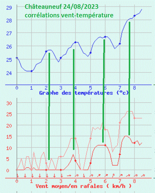 Aujourd'hui nous sortons déjà de la fraîcheur ; il faudra toutefois patienter jusqu'en soirée ou même coeur de la nuit pour voir le thermomètre atteindre son plus haut. Attendons-nous donc à mesurer des 5 à 7° en plein milieu de la nuit prochaine et ceci dans la tranche 800-1200 m. Auparavant, nous aurons en journée reçu quelques gouttes insignifiantes et apprécié la décroissance du vent qui s'en sera retourné à son sud-ouest avant midi.