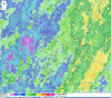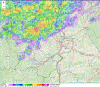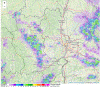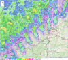 Ce passage pluvieux tient toutes ses promesses, les cumuls depuis hier matin dépassent largement 50 mm par endroits et il continue de pleuvoir fortement (débit instantané de 40 mm/h ici actuellement). A 8h tout pile il était tombé ici 52 mm et il en est retombé environ 8 de plus dans la demi-heure qui a suivi amenant le cumul provisoire aux alentours de 70 mm. Je ferai un bilan détaillé une fois que la douche sera finie, c'est-à-dire dans l'édito de demain matin.